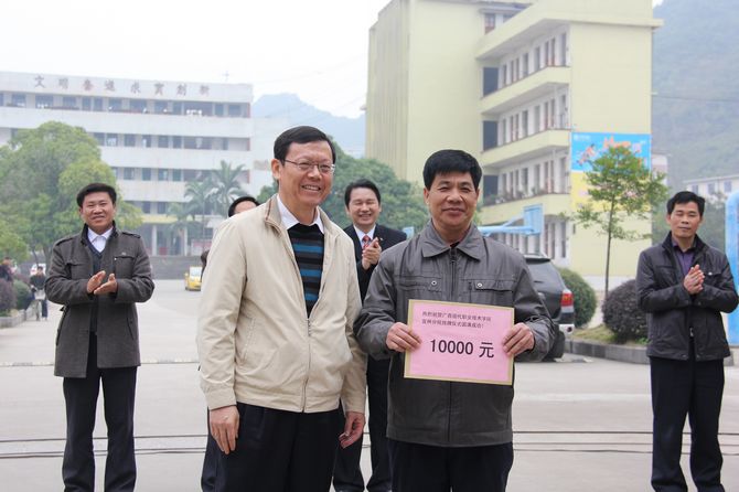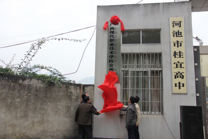 河池市教育局副局长黄绍光,学院党委副书记、纪委书记覃志航,河池农校校长韦纯烟等领导为广西现代职业技术学院宜州分院揭牌。