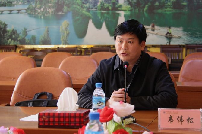 学院党委书记,河池市职教中心党委书记、校长韦伟松作汇报