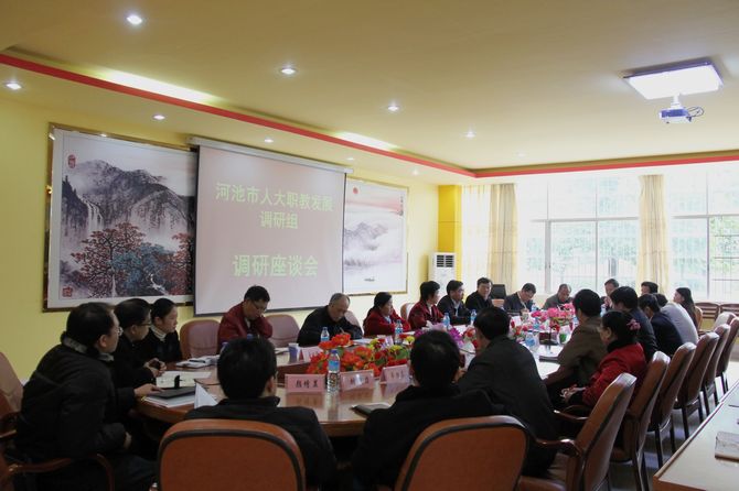 座谈会由河池市人大常委会教科文卫委员会主任王国秀主持,我院及市职教中心有关部门领导参加了座谈会。
