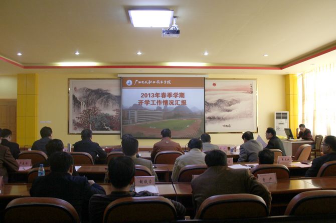我院在图书馆会议室组织了开学情况汇报会,会议由学院党委书记韦伟松主持,韦伟松书记对检查组领导到我院检查指导工作表示热烈欢迎,并简要介绍了学院目前的发展情况。他表示,学院正积极学习贯彻党的十八大精神,积极贯彻落实国家和自治区教育工作会议精神,统一思想,凝心聚力,强力推进内涵建设,促进学院跨越发展;他希望,要以此次检查为契机,认真听取检查组的宝贵意见,做好学院的各项工作。