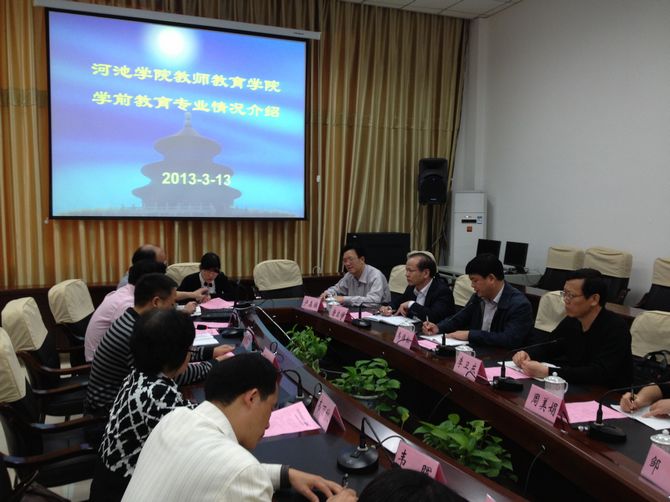 学院管外系讯(卢森焕) 为了解我区学前教育专业的办学情况,学习借鉴兄弟院校的办学经验,做好我院学前教育专业建设的准备工作,2013年3月13日和15日,我院教科处周美娟副处长、管理工程系卢森焕副主任以及学前教育专业有关负责人先后到柳州师范高等专科学校、河池学院和广西幼儿师范高等专科学校考察学习。柳州师范高等专科学校副校长卢祖达、河池学院副院长周虹和广西幼儿师范高等专科学校校长袁旭等领导热情接待了我院考察团。