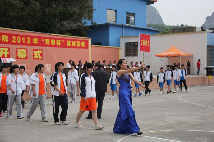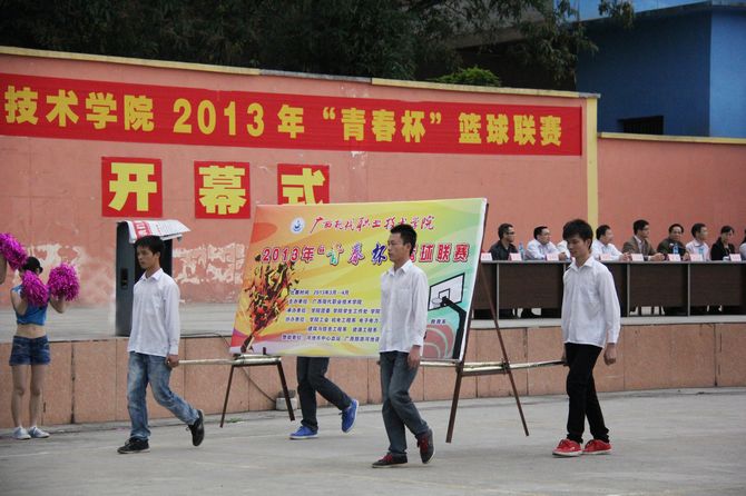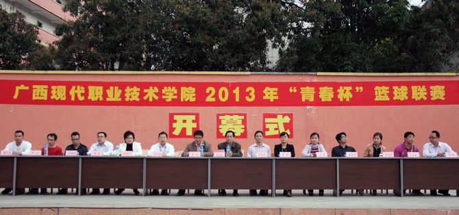 学工处、团委、文体部讯 为丰富学院广大师生的课余生活,提高我院篮球运动水平,促进各系学生之间及师生之间的交往与交流,营造良好的校园文体活动氛围。2013年3月29日下午,我院2013年“青春杯”第十届篮球联赛开幕式在学院文体广场隆重举行。学院党委副书记、纪委书记覃志航副教授出席并宣布开幕,学工处、团委、工会、文体部、河池市职业教育中心学校学工处领导、各系分管学生工作领导以及赞助单位的相关人员参加仪式,学工处副处长、团委副书记黄仕珍主持开幕式。