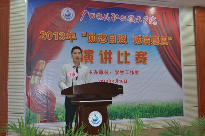 演讲台上,参赛选手结合自己和身边的事例,围绕主题,进行声情并茂、感人肺腑的演讲,表达他们对国家资助政策的感恩之情。选手们的激情演讲,获得了在场领嘉宾、评委以及观众的一致好评。最后,来自经济管理系和机电工程系的覃梓岚、梁永吉分获演讲比赛的一二名,并作为学院选手参加全区高校资助演讲比赛复赛。