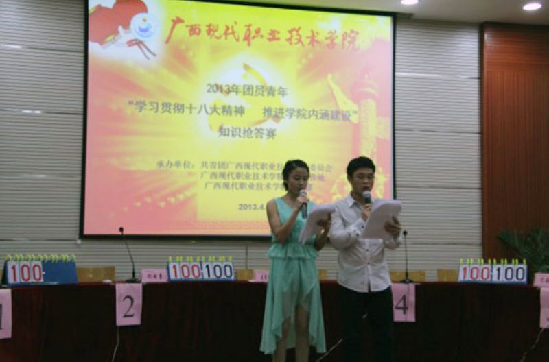 为激励学院广大团员青年“学党史、知院情、跟党走”,全面准确地掌握党的十八大精神实质,增强学习宣传贯彻党的十八大精神的责任感和使命感,树立正确的“三观”,真正做到“三热爱”。2013年4月27日晚,我院团员青年“学习贯彻党的十八大精神·推进学院内涵建设”知识抢答赛在学院第二学术报告厅隆重举行。机电、电子、资源、建筑与信息工程、经济管理与教育等6个系部代表队参加比赛。