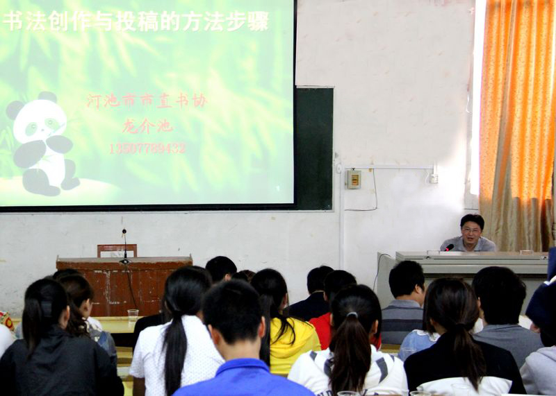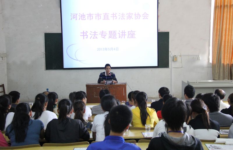 弘扬传统文化 实现“中国梦”——河池市市直书协书法专题讲座在我院举行(图文)