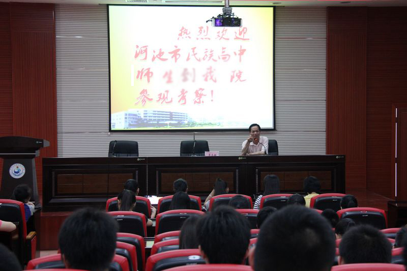 党委宣传部讯 2013年5月17日下午,河池市民族高中120多位师生到我院参观考察。学院在第二学术报告厅举行了师生交流会,学院党委副书记、纪委书记覃志航出席会议并讲话。学院招生办、就业办等负责人参加了相关接待活动。