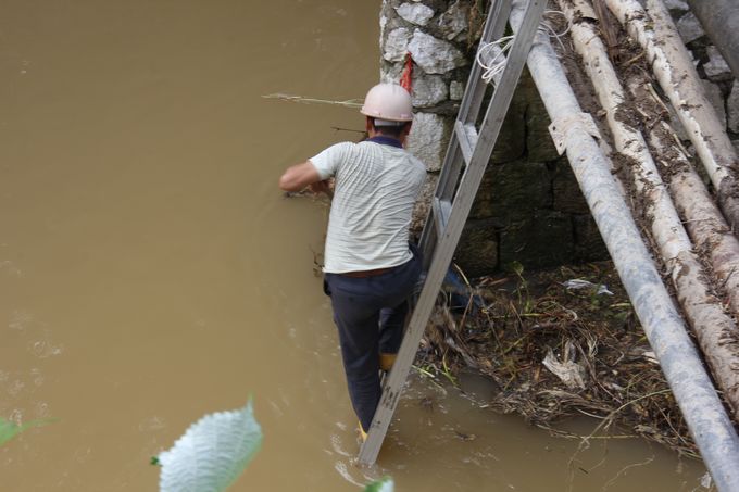肯研河又名六圩河,西起金城江区六圩镇肯研村,东至城区南桥,流入龙江河。由于河段的两岸居住的多为商户和居民,随意排污和乱扔生活垃圾,加上城西六十米大道旁的建筑工地排放的建筑垃圾,导致肯研河中下游垃圾成堆,恶臭难闻。教职工们有的拿着铁铲下到河道中清除於泥;有的则拿着钳子将散落在河床、水草中的垃圾掏出。经过两个多小时的清理,捡拾到大小垃圾几十筐,几百米长的河床和河面被清理得干净整洁。