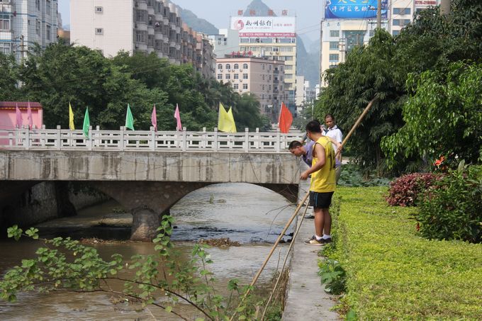 院党委宣传部 为扎实推进“美丽河池·清洁乡村”活动,进一步加大河池市中心城区环境综合整治工作。2013年5月24日下午,我院参加了全市集中开展“美丽河池·清洁乡村”河池市中心城区清洁家园和水源大行动。学院党委副书记、纪委书记覃志航等院领导带领200多位教职工到肯研河市财政局至河中段清理河床河面垃圾。