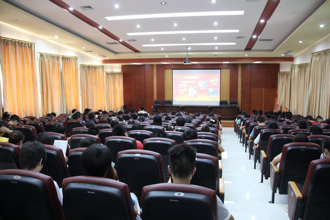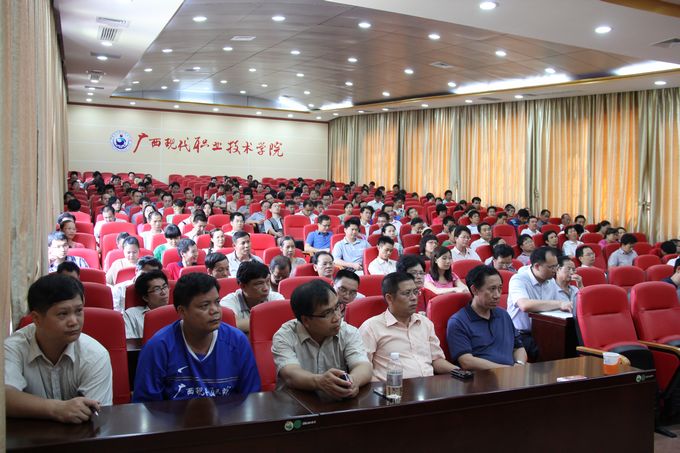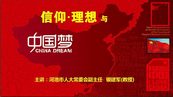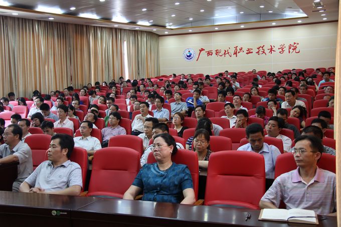 院党委宣传部讯 为深入贯彻落实党的十八大精神,扎实开展中国特色社会主义宣传教育,畅想民族复兴“中国梦”的光明前景,引导大学生树立崇高的理想信念。2013年5月28日下午,我院在第一、二学术报告厅举行了“信仰·理想与中国梦”专题讲座。河池市人大常委会副主任银建军教授应邀主讲。学院党委副书记、纪委书记覃志航,学院全体教职工以及部分大学生500多人参加了专题讲座。