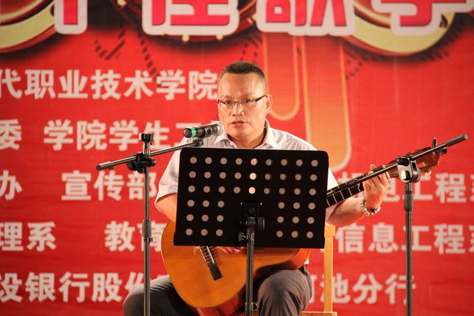上图为机电工程系周植军同学演绎的独唱《说谎》。