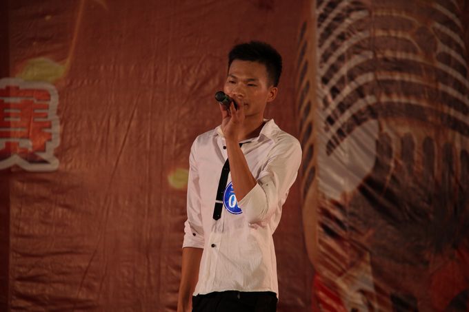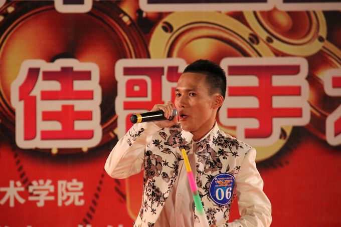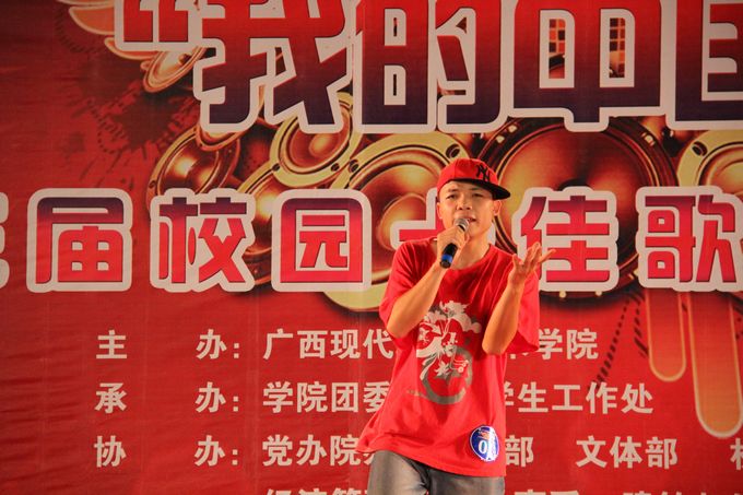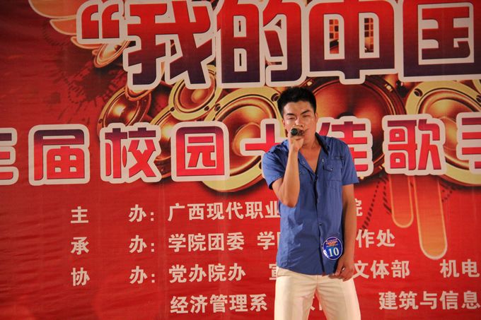 上图为机电工程系覃家运同学演绎的独唱《天高地厚 》。