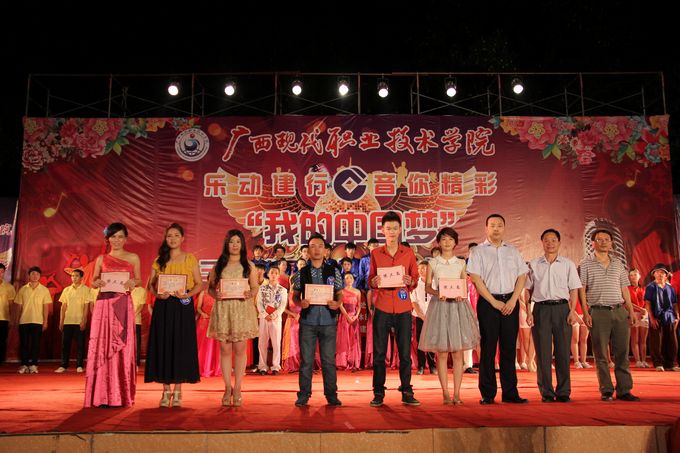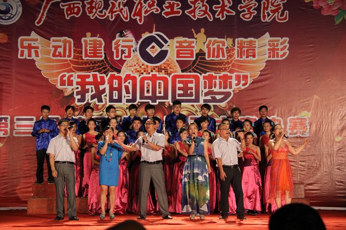 院党委宣传部讯 飞扬的歌声,吟唱难忘的岁月;熟悉的旋律,演绎时代的激情。2013年5月28日晚,乐动建行·音你精彩“我的中国梦”第三届校园十佳歌手大赛决赛在学院文体广场隆重举行,市人大常委会副主任银建军,学院党委书记韦伟松,团市委副书记黄泽,学院党委副书记、纪委书记覃志航,学院副院长冯忠伟,建行河池分行副行长李进军等领导嘉宾出席晚会。