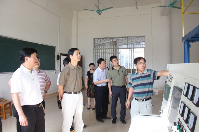 会后,黄党源书记一行在学院党委书记韦伟松的陪同下参观了我院校园环境和冶金、电子、数控实训室,以及学生宿舍、学生食堂。