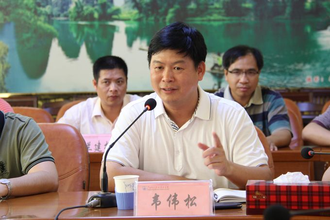 学院党委韦伟松书记首先致辞,他对广西职业技术学院到我院考察指导表示最热烈的欢迎和最诚挚的感谢。韦书记向远道而来的广西职业技术学院领导简要介绍我院的发展历史,指出我院经过长期的发展积淀,尤其是去年以来,学院在新领导班子的带领下,解放思想,改革创新,突破瓶颈,重点抓招生工作和内涵建设,学院办学取得新进展,奠定了较为坚实的办学基础。韦书记还介绍到,经过充分的酝酿和精心谋划,我院将通过实施内涵建设“十大工程”攻坚,树立广西高职教育新品牌;广西职业技术学院是国家骨干示范院校建设单位,办学实力雄厚,专业建设经验丰富,希望广西职业技术学院能在各方面给予我院指点与帮助。