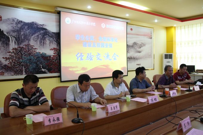 当天上午,学院在图书馆会议室召开了学生公寓、食堂标准化建设与校园安保经验交流会,覃志航副书记在会上致欢迎辞并介绍学院的基本办学情况。随后,唐明生书记对此次来访的目的做了说明,并对我院在短短的几年内,在办学质量、办学规模和办学特色上取得的显著成绩表示祝贺,他说,我们两所学校都是同一类普通高职院校,都有相似的办学理念,但是,贵校是河池市的唯一一所普通高职院校,市委市政府也给予很大的支持和帮助,加之贵校又开设有冶金技术、矿物加工技术、机电一体化等特色专业以及新开设的学前教育、工程造价,发展前景非常看好,有很多地方值得我们学习。交流会上,两校的对口相关部门还就学生公寓、学生食堂标准化建设与管理、校园安保等相关工作的主要做法进行交流。