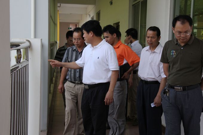 院党委宣传部讯 2013年6月14日下午,学院党委书记韦伟松实地督查我院“美丽河池·清洁校园”活动开展情况,并重点检查了学院第一教学楼、实验楼、实训楼、学生公寓以及学院公共场所卫生区的清洁卫生。院长助理韦胜东,学院党办(院办)、纪检办、后勤处、学工处以及各系等相关负责人陪同督查。