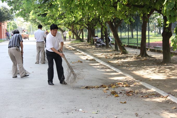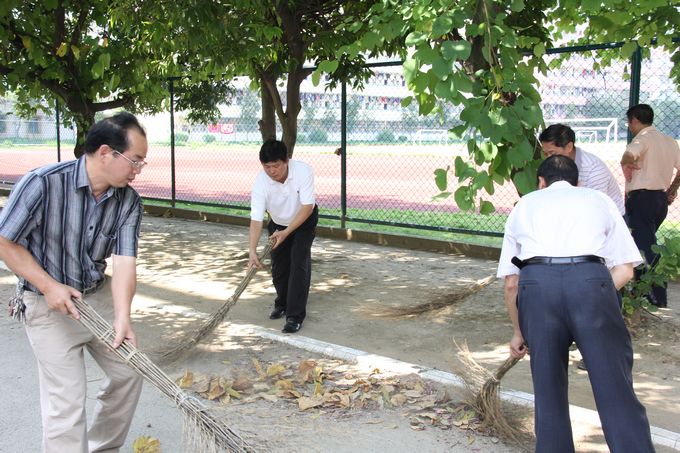 督查结束后,韦书记还与陪同人员、学生清扫了校道环境卫生。