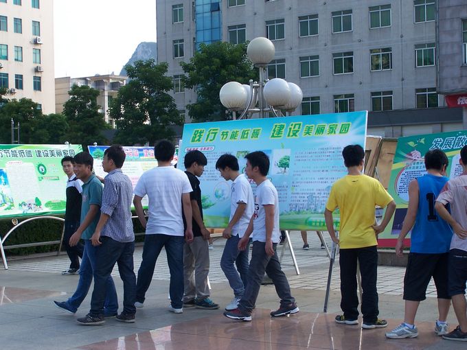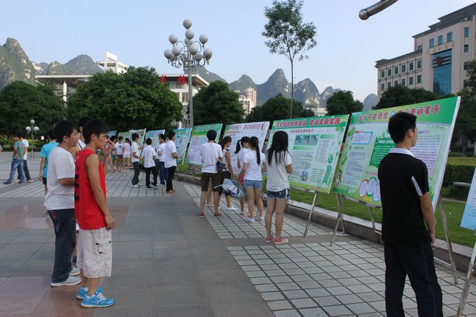 学院节能办讯 为引领大学生们参与全社会节能减排,加强大学生节能减排意识,发挥当代大学生节能示范作用。2013年6月20日下午,我院组织100多位师生到市政广场参观河池市“践行节能低碳,建设美丽家园”板报展览活动。