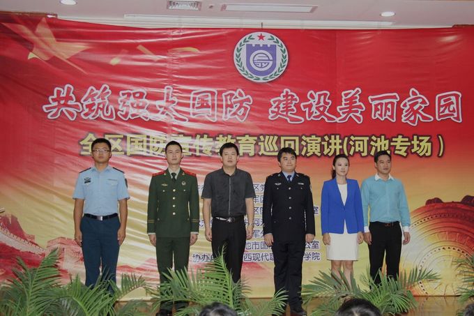 学院党委宣传部讯 为进一步学习贯彻落实党的十八大精神,深入开展广西的国防教育,增强全民国防意识,2013年6月26日上午自治区“共筑强大国防,建设美丽家园”国防宣传教育巡回演(河池专场)在我院第二学术报告厅举行。我院广大师生及武警官兵聆听了演讲团的精彩演讲。