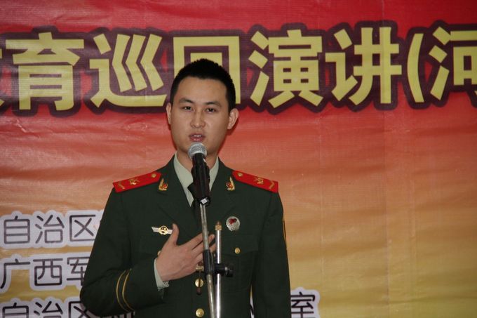 此次巡回演讲活动,由自治区党委宣传部、广西军区政治部、自治区国防教育办公室联合组织,旨在进一步学习贯彻落实党的十八大精神,不断增强广大干部群众的国防观念,进一步推动广西国防教育普及发展。巡回演讲团的6位成员,是从全区国防宣传教育主题演讲比赛中脱颖而出的部队官兵、地方干部等优秀代表,他们以“共筑强大国防,建设美丽家园”为主题,结合自身经历或所见所闻的工作及生活实际,用生动凝练的语言,讲述自己对国防、国防教育以及加强国防建设的认识和理解,抒发出自己心系国防、献身国防,为实现“中国梦”而努力的情怀。