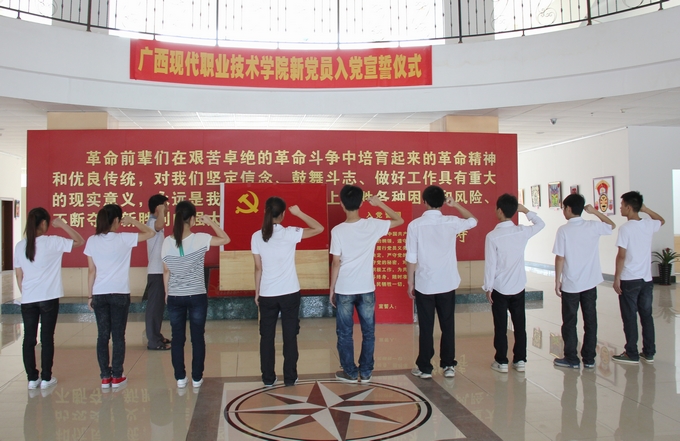 学院党委组织部讯 在中国共产党92周年华诞之际,7月1日下午,我院2013年上半年新发展党员入党宣誓仪式在河池革命纪念馆举行。入党宣誓仪式由学院党委组织部罗之尚部长主持。学院党委组织部有关同志、各系党总支书记、正式党员代表以及新发展的部分在校的预备党员参加宣誓仪式。