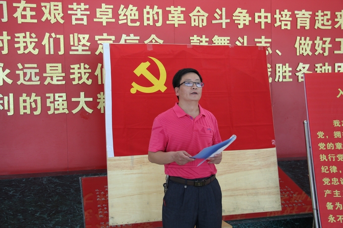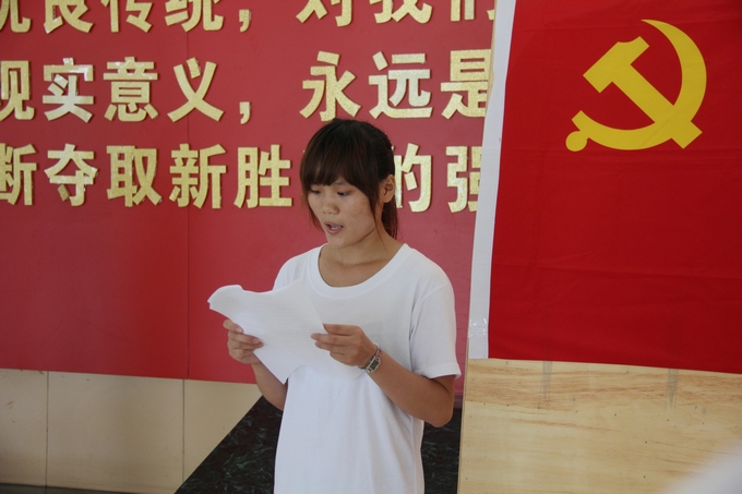 下午4点,河池革命纪念馆大厅格外庄严,在领誓人潘华林副部长的带领下,新发展的预备党员面向鲜红的党旗发出庄重誓言,誓为共产主义事业奋斗终身。随后,正式党员代表向银环老师和预备党员代表邓芳娜同学分别作了发言。