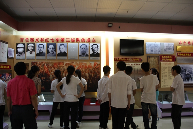 宣誓仪式结束后,新党员还参观了河池革命斗争史第一、二展厅、国防教育展厅以及少数民族手工艺作品实物图片展。参观中,新党员们认真听取讲解员的介绍,仔细观看馆内的红色革命事迹、陈列的各种革命遗物;亲身感受在中国共产党领导下河池各族人民艰苦卓绝的革命斗争史,亲身领略积淀深厚、多姿多彩的河池少数民族手工艺术和民间文化。
