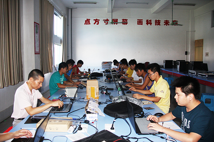 7月30日,广西现代职业技术学院的师生们正在实训教室接受训练,备战全国电子设计大赛。曾严摄