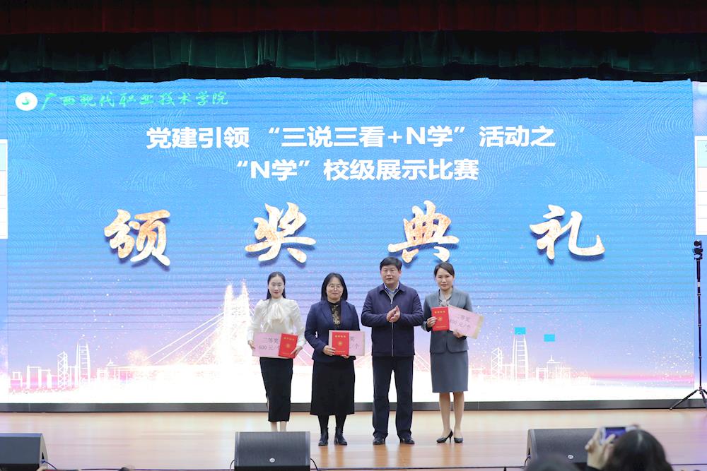 “三说三看+N学”,是我校党委以“党建引领,注重实效”为原则开展的教师综合素质能力提升学习活动。“三说”是指说政策文件、说产业职业、说专业课程。通过“说形势政策”学习国家职业教育的最新方针政策,把握职业教育事业发展的新形势与新任务;通过“说产业职业”了解产业行业发展现状及前景,定位专业面向的职业,找准主要就业岗位;通过“说专业课程”展现教师教学内容、教学方法、课程特色及创新成果。“三看”是指看中央新闻、看广西新闻、看河池新闻。通过“三看”了解国家、区域经济社会发展动态,把握时代脉搏,将时政热点融入教育教学。“N学”是指教师结合自身实际自选学习内容以丰富知识结构,提高为人师者的素质和能力。