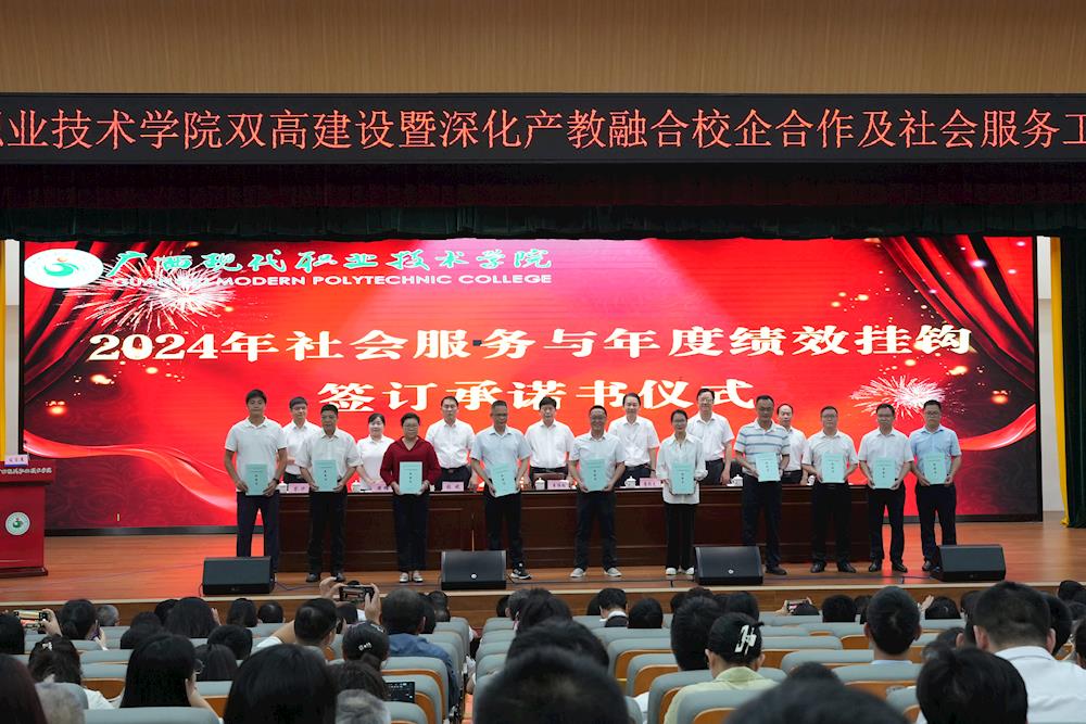 会上,岑华解读社会服务与年度绩效挂钩工作方案;二级学院部门代表分别发言;各团队递交2024年社会服务工作承诺书。