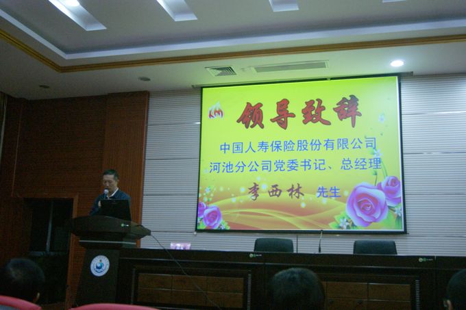 经管教育系讯 2013年10月17日晚,我院与中国人寿保险河池分公司在学院第二学术报告厅举行了定向生培养计划说明会。本次定向生培养计划主要面向我院经济管理市场营销、金融管理与实务等专业学生。学院党委副书记、纪委书记覃志航,经济管理系卢森焕主任,以及中国人寿保险河池分公司李西林总经理、陈璇总经理助理、银行保险部何小宁经理等公司领导出席会议。我院经济管理系11营销、12营销、11财务等160多名班级学生参加了本次会议。