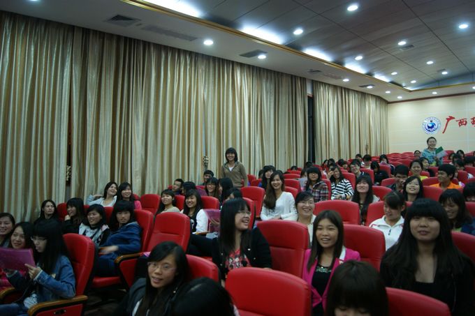 中国人寿保险河池分公司培训讲师李细珍女士做了题为“财富人生”的专题讲座,之后是有奖问答,与会同学踊跃回答问题,气氛活跃。接下来的优秀精英分享和管理人员访谈及自由交流活动,使在座同学更深入了解这个行业的发展机遇和前景。