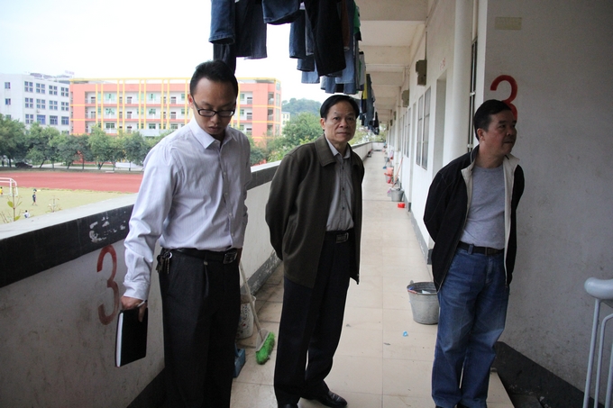 学院党委宣传部讯 2013年10月21日,学院党委副书记、纪委书记覃志航率院办、教科处、后勤处、宣传部、学工处、纪检办、图书馆以及各系部相关负责人检查我院新一轮“美丽河池·清洁校园”活动开展情况。