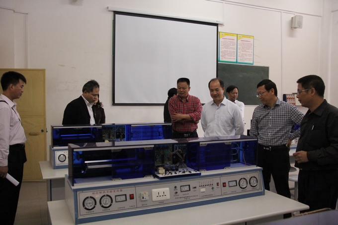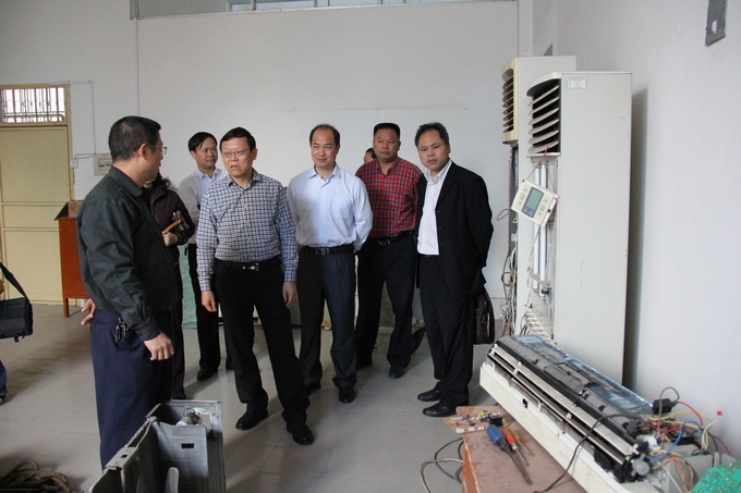 李明乾一行首先参观了学院焊工实训室、数控实训室、电工实训室、制冷实训室,并对我院技能培训的硬件、软件方面建设给予很高的评价。在随后的座谈会上,学院领导详细介绍了学院技能培训的办班规模、师资力量以及近年来与河池市总工会、扶贫办、人社局等单位联合办班的典型培训案例,同时,也希望宜州监狱能与我院长期合作,为即将走上社会的临释人员传输技能知识,让他们有较好的就业路子,降低他们的重新违法犯罪率。李明乾表示,广西现代职业技术学院在技能培训工作方面做得非常好,也有一定的培训经验,宜州监狱临释人员技能培训班放在这里培训非常适合,考虑到临释人员的特殊性,学院要选派培训老师到宜州监狱现场授课,具体的工种培训,待给临释人员作个全面的调查后择期办班,同时,宜州监狱还将把临释人员技能培训打造成为临释人员教育工作的亮点,并作为一项长效机制常抓。