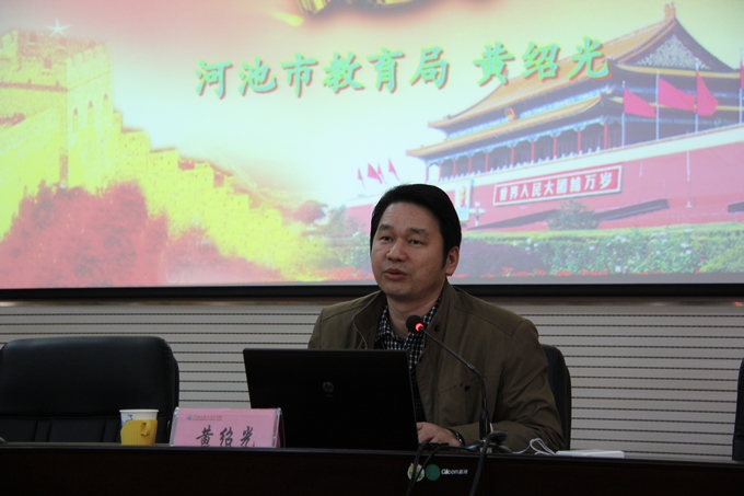 宣讲会上,黄绍光用灵活多变的形式,大量贴近生活的例子,从十八届三中全会的新观点新论断、信访制度改革、生态环境保护问题、启动实施一方是独生子女的夫妇可生育两个孩子的政策、关于推进考试招生制度改革等8个方面,全面、准确、透彻地进行宣讲。同时,他还结合河池的实际,根据学院的实际,重点宣讲关于教育方面的改革问题,在师生中引起巨大反响。