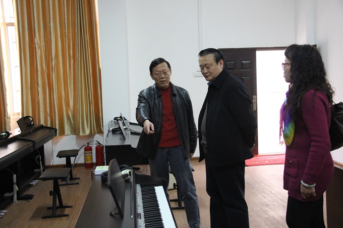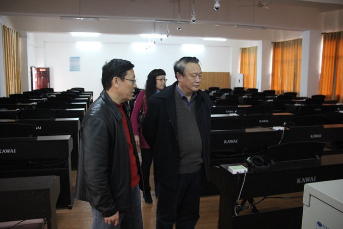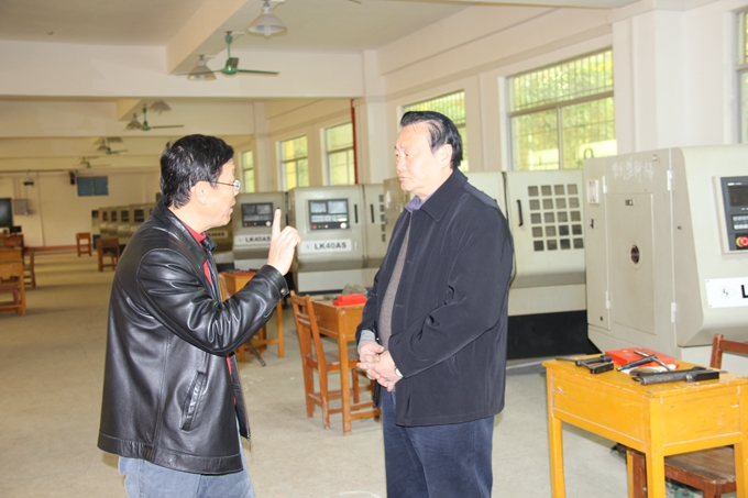 银建军先后参观考察了学前教育实训基地的美术实训室(画室)、舞蹈与形体实训室、音乐实训室、电子钢琴实训室、蒙特梭利教育实训室、幼儿园模拟教室、幼儿手工制作实训室,数控实训室,冶金实验室,间歇反应实验室等。