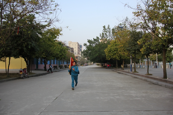 54岁的肖先高是湖南省芷江侗族自治县水宽乡电冲村的一位普通农民,由于从小体弱多病,从十一二岁开始练长跑,这一跑就是三十多年,跑烂了四百多双鞋,行程六十余万公里,在祖国大江南北都留下了他的足迹。肖先高对笔者说,他这次是跑步去宝岛台湾,路过河池这所优美的广西现代职业技术学院,想在此短暂休息调整,顺便感受一下大学里的书香氛围和浓郁的校园文化,再继续前往目的地。