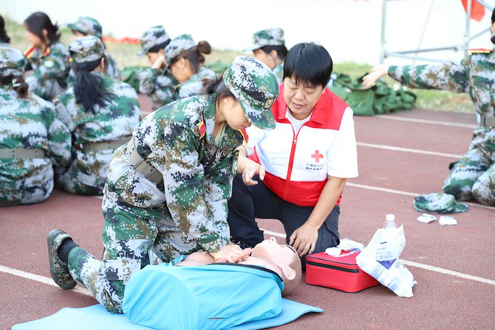 本次培训特邀广西壮族自治区红十字会训练中心35名资深急救导师,分批次分时段下到新生营70个连队开展专场培训,以“全员参与、全员训练、全员考核”的理念,使每一位参与的同学都能掌握基本的急救知识和技能,达到“能救、会救、敢救”的目标。