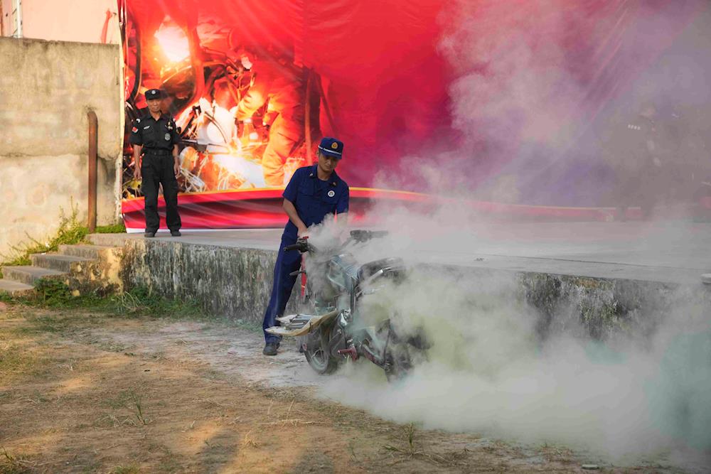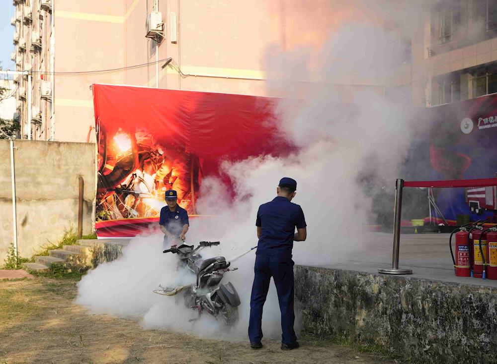 演练结束后,韦建斯给我校师生做消防安全知识讲座。他详细讲述了消防安全知识与应急处理办法,强调学生应该增强消防安全意识,掌握基本的消防知识与技能并学习应对火灾的正确处理方法。消防队员演示灭火器的使用方法,随后让学生体验使用灭火器灭火。