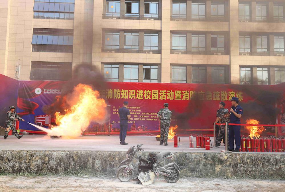 为增强我校学生安全意识,培养学生在火灾中的逃生自救能力,9月27日下午,我校组织开展2024年消防知识进校园活动。河池市金城江区文体路消防救援站站长助理韦建斯,新生军训总教官,我校法制保卫处、学生工作处及各二级学院主要负责人,金城江区消防救援大队工作人员及2024级4900多名新生参加活动。