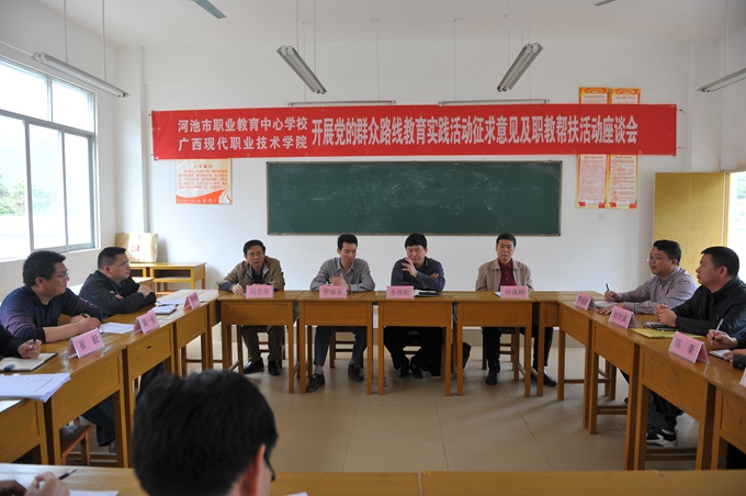 学院学习实践办讯 4月10日,市委副秘书长、学院党委书记韦伟松带队分别深入巴马县职业技术学校、凤山县职业技术学校、河池民族农业学校、宜州市职业教育中心、环江县职业技术学校开展党的群众路线教育实践调研活动,并征求对河池市职教集团化办学的意见和建议。学院纪委书记覃志航、学院副院长冯忠伟、河池市职教中心副校长黄丹俊等参加相关活动。