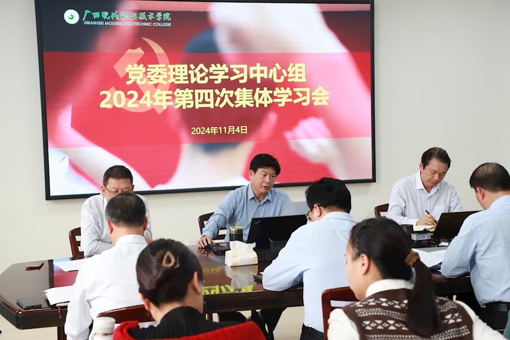 11月4日,学校党委中心组在综合楼2007会议室召开2024年第四次集体学习会,专题学习党的二十届三中全会精神、习近平总书记重要讲话和全国教育大会精神。党委中心组成员出席会议,党办、组织部、宣传部、纪检办有关负责人,各党支部书记列席会议。会议由河池市政协副主席、学校党委书记韦伟松主持。