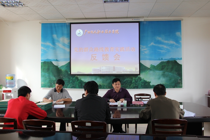 汇报会上,纪委书记覃志航首先向督导组汇报了我院党的群众路线教育实践活动第一环节工作开展情况。其次,韦伟松书记总结了学院开展党的群众路线教育实践活动以来的工作成效,以及学院实施的一线工作法等典型亮点。随后,督导组通过观看活动成果展、查阅材料、交流访谈等方式,对我院前阶段开展党的群众路线教育实践活动进行督导检查。
