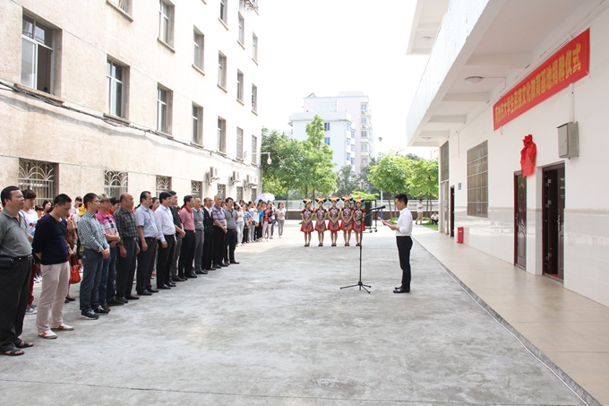 学院党委宣传部讯 2014年5月9日下午,河池市大学生民族文化教育基地揭牌仪式在学院学前教育实训楼隆重举行,市委副秘书长、学院党委书记韦伟松,市文广局局长杨卫群出席仪式并为基地揭牌。市群众艺术馆副馆长杨忠,河池市音乐家协会主席,原河池市群众艺术馆馆长陈恒芳在仪式上致辞。仪式由学院纪委书记覃志航主持。市文广局纪委书记梁显洲,市音乐舞蹈界知名人士覃杰锋、韦土良、吴才泽、黄康、吴保剑,市群众艺术馆音乐舞蹈老师以及学院学前教育专业师生参加揭牌仪式。