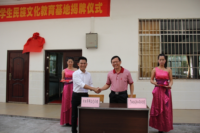 随后,河池市大学生民族文化教育基地在热烈的掌声中揭牌成立。仪式其间,学院还与市群众艺术馆签署了河池市大学生民族文化教育基地双方合作共建协议。