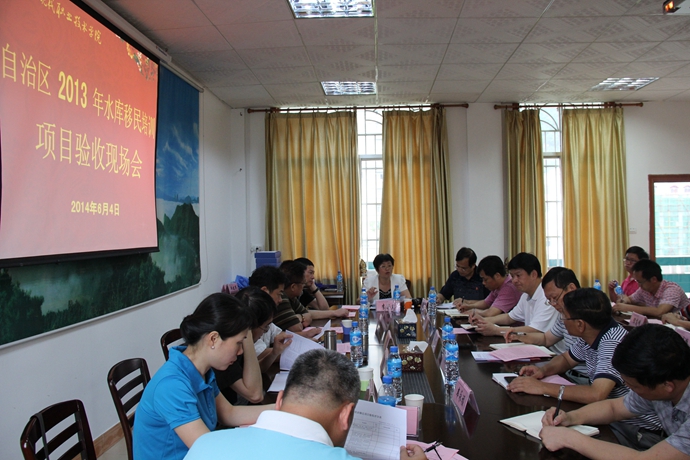 学院培训部讯 6月4日下午,自治区2013年水库移民培训项目验收会在学院第一行政办公楼五楼会议室召开。自治区水库移民工作管理局培训处处长覃革,市委副秘书长、学院党委书记韦伟松,市水库移民工作管理局局长罗光勤,自治区水库移民工作管理局监察室副主任朱雄伟,计财处调研员、副处长谌肇春,培训处副处长李海燕,学院副院长冯忠伟及相关部门负责同志出席或参加验收会。