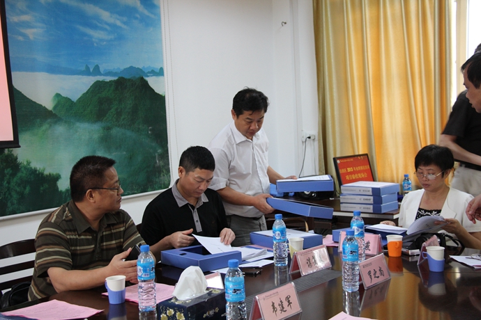 在汇报会上,以覃革为组长的验收专家组通过查阅档案资料、查看实训场地以及召开座谈会等方式对我院2013年水库移民培训工作进行现场验收。