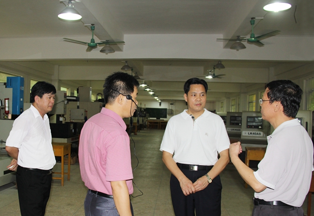 当天,黄世勇参观了我院美术、舞蹈与形体、数控机床、选矿、冶金等实训基地,了解学校专业设置和教学情况;深入职教中心汽车整车实训基地和体育场建设现场等地,了解学校教育教学及基础设施建设情况;并与我院和职教中心的领导和教职工亲切座谈,听取情况介绍,共商河池职业教育发展大计。