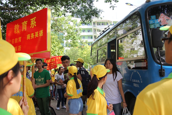 新生初次走进大学校园,对所有的东西都是陌生的。为了给新生提供细致周到的服务,让新生和家长在报到的时候有头绪,学院党委专门开会研究“迎新”事宜,各系都做了精心的准备。在各系的新生报到处,记者看到从咨询到检录再到填写学生信息等都有详细的指示牌,并且每个地点都有专门的大学生志愿者负责帮助。这样一来,新生和家长不用费事就能“一站式”地完成办理入学的所有手续。“把名字填在这里。”“这样写就行!”旁边的志愿者不停地指点着新生。 签到指示清楚,志愿者服务也特别到位。为了让初次踏入大学校园的新生能顺利找到自己的寝室,每个教学系都出动了百余名志愿者。记者了解到,在这里,只要新生办理完手续后,就会有志愿者把他们送到自己的寝室。这个过程中,志愿者还充当起“搬运工”。“我都已经爬了8趟6楼了。”志愿者小张同学笑着说。