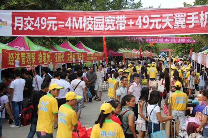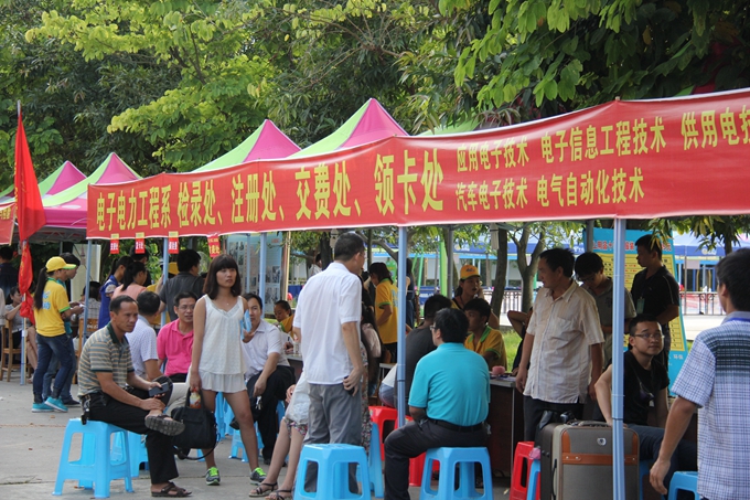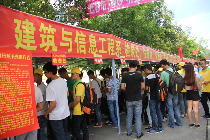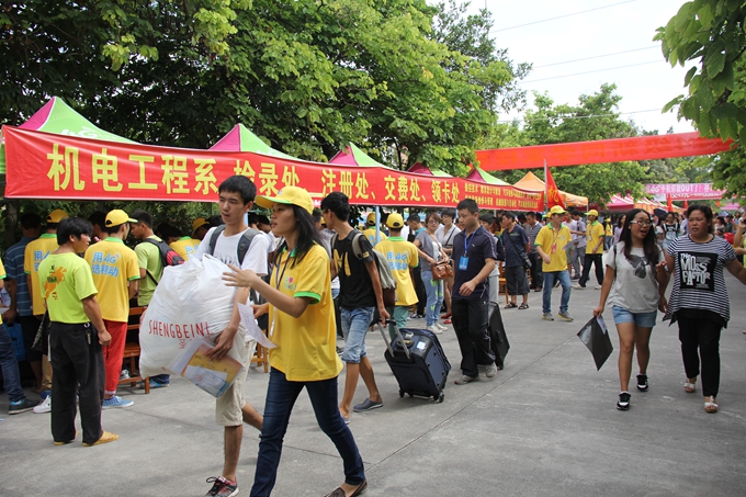 学院党委宣传部讯 年年桃李,岁岁芬芳。2012年以来,广西现代职业技术学院以提高学生和社会满意度为目标,实施内涵建设十大工程系列改革,学院各项工作逐年上档进位。今年新生录取第一轮补录就已录满,录取分数线比去年高出60分,录取新生达3000人。学院新生入学人数年年攀升,今年新生入学火爆场面更胜往年。